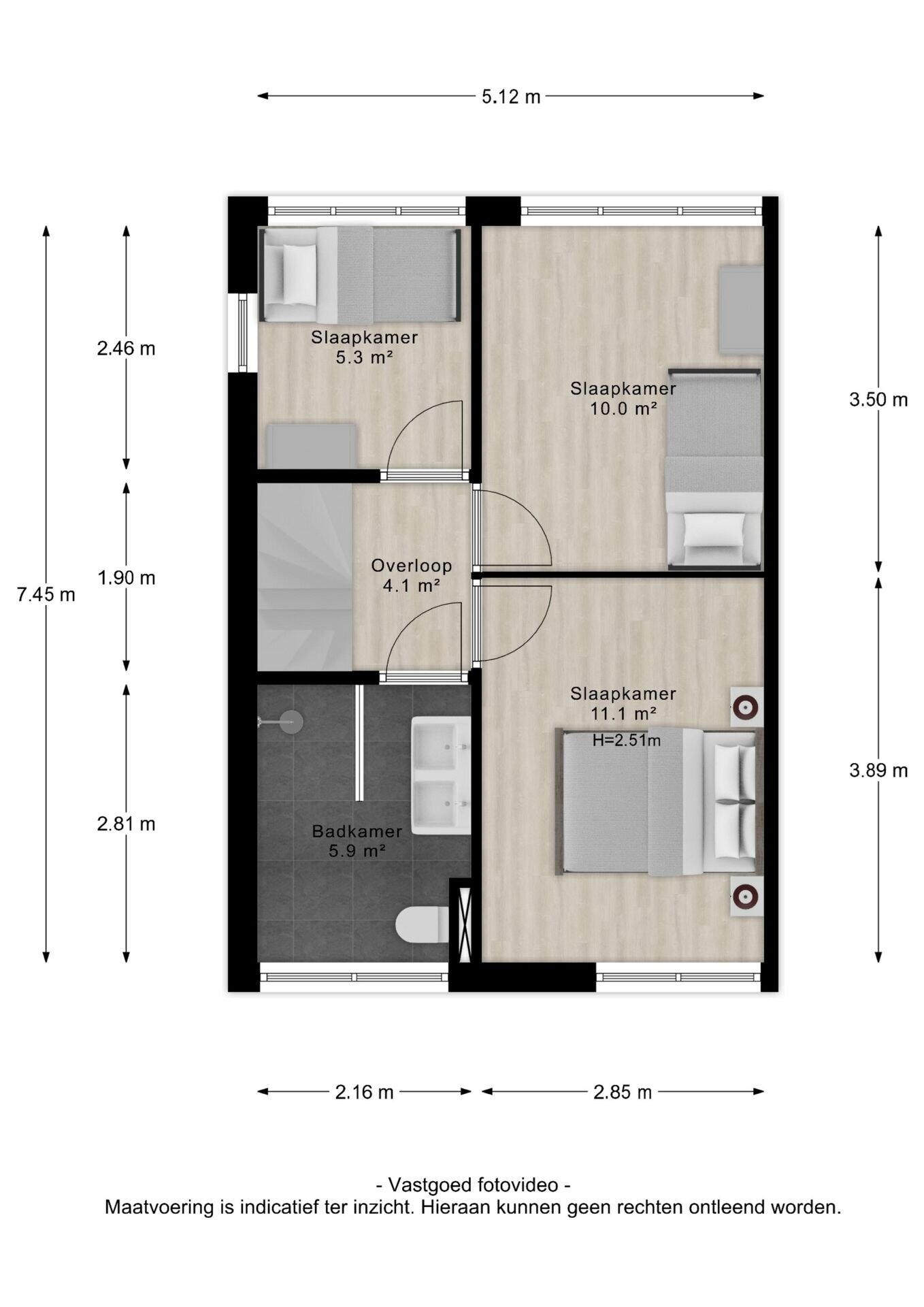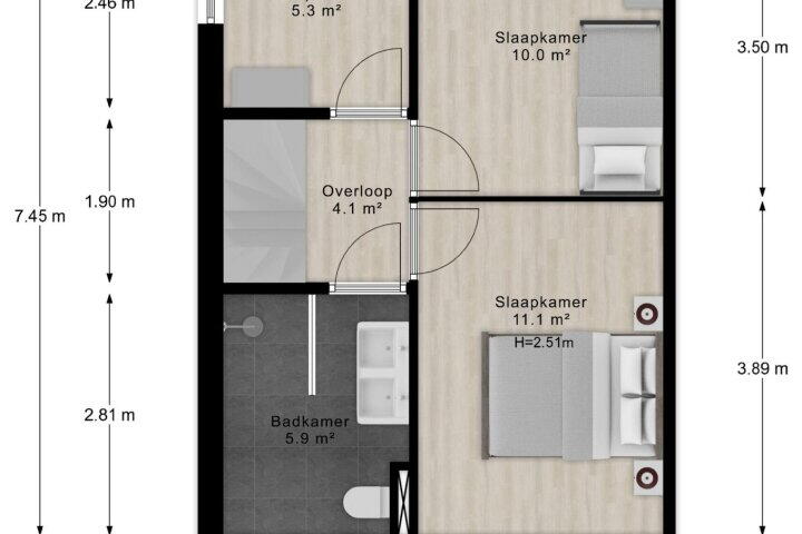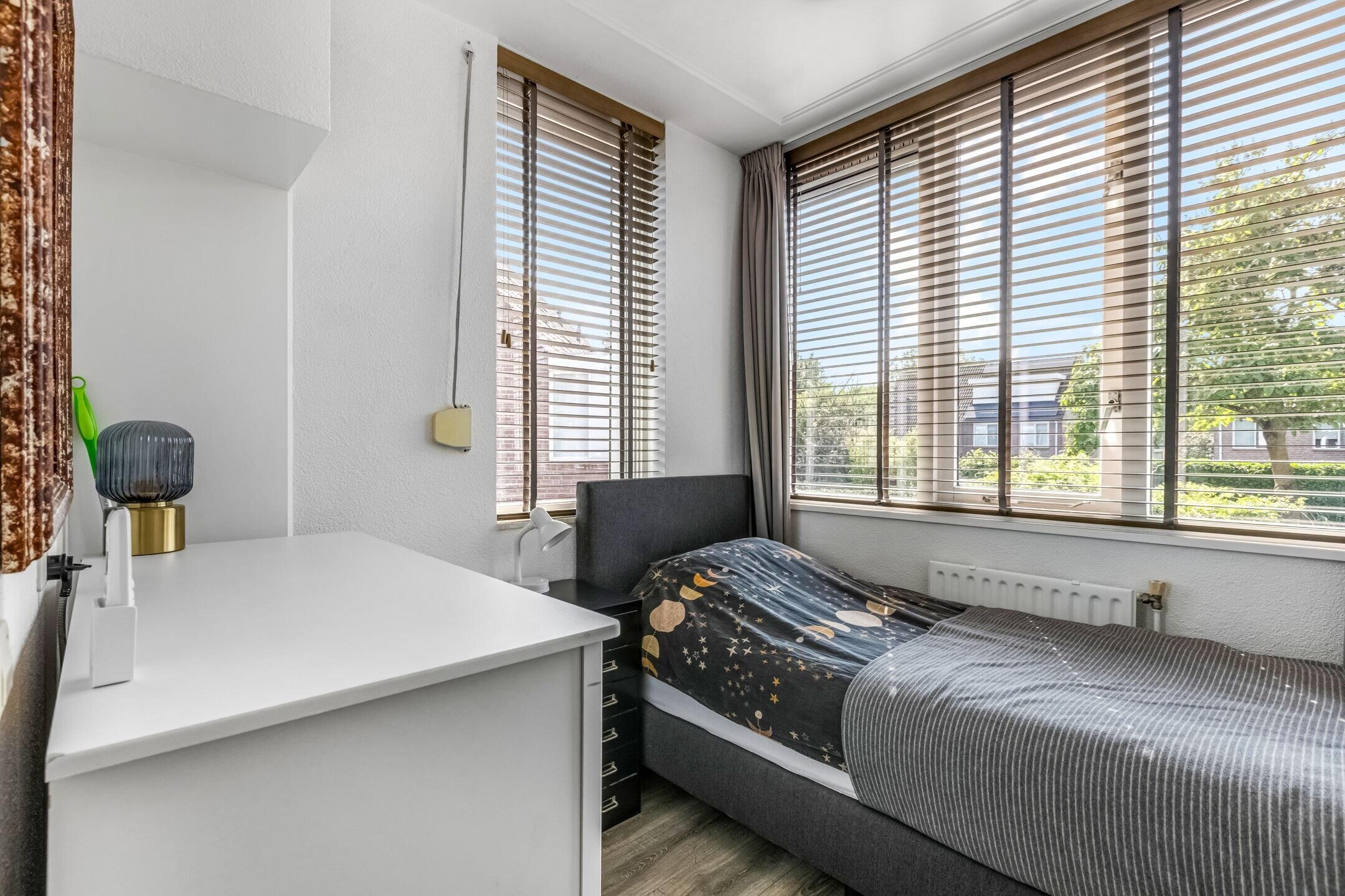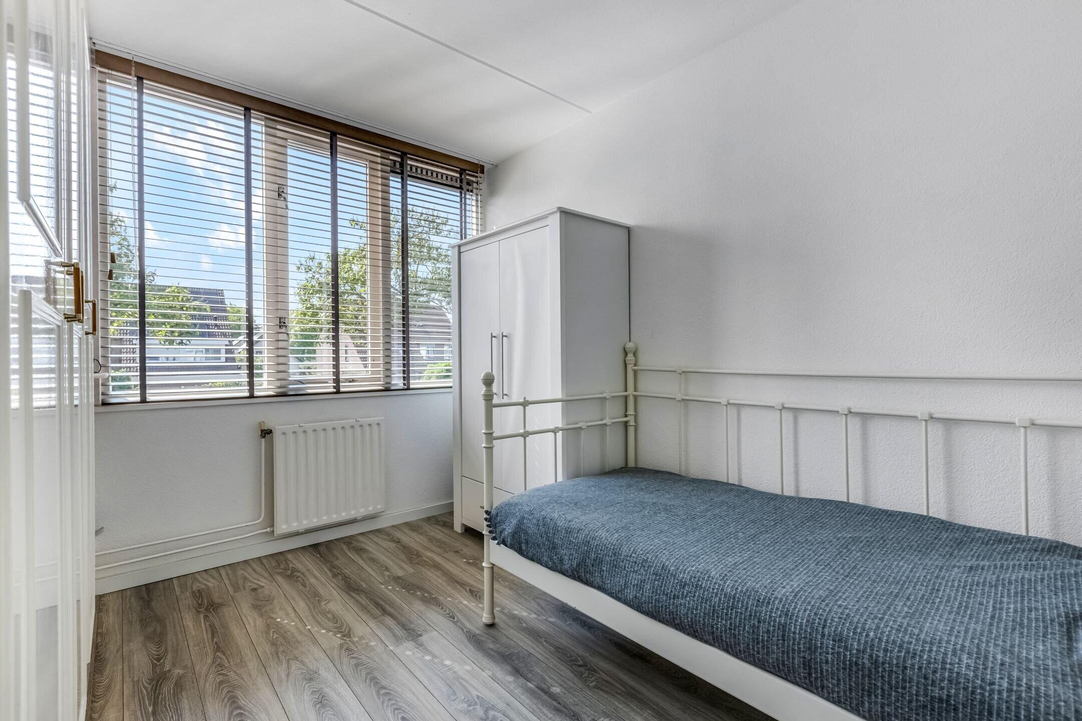 De woning beschikt over 4 goed bemeten slaapkamers, waarvan er 3 op de eerste verdieping zijn gelegen. De hoofdslaapkamer is met 11 vierkante meter lekker ruim en slaapkamer nummer 2 doet met 10 vierkante meter niet voor de hoofdslaapkamer onder. De derde slaapkamer op deze verdieping is circa 5,5 vierkante meter groot. Ideaal als logeerkamer, studie/werkkamer of kastenkamer. De moderne badkamer (2021) is keurig afgewerkt en uitgerust met een inloopdouche, wastafelmeubel met dubbele kom en een toilet.