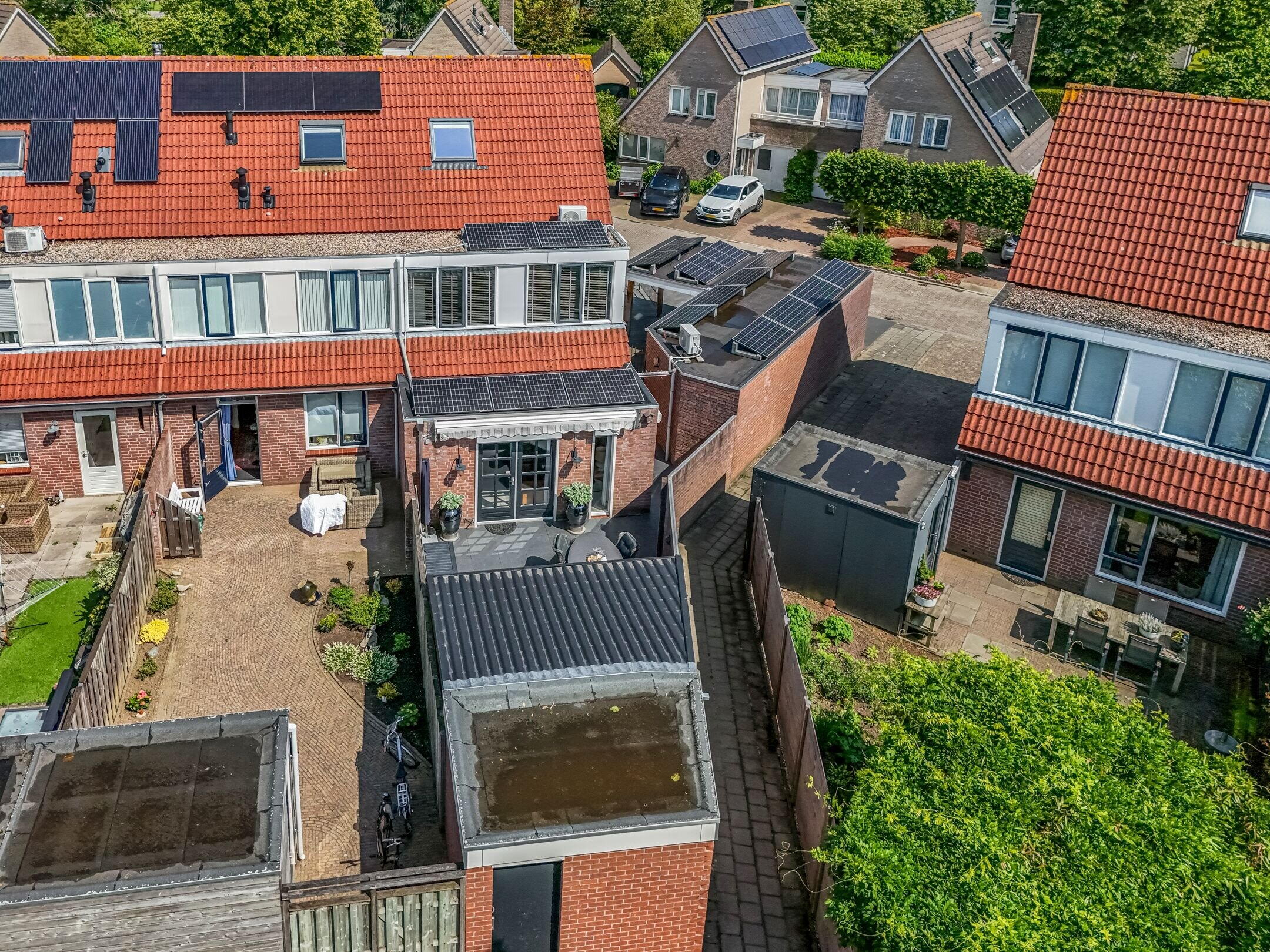 De woning is gebouwd op een perceel van liefst 247 m² en beschikt over een heerlijke voor, zij- en achtertuin. De zonnige achtertuin is voorzien van een heerlijke veranda en is de ideale plek om na een lange dag heerlijk te ontspannen. Uniek is de vrijstaande stenen garage met aangrenzende berging en carport! Ideaal voor het stallen van auto’s, motoren of als extra opbergruimte. Met 17 zonnepanelen op de daken is het tevens een ideale plek om jouw elektrische auto op te laden.