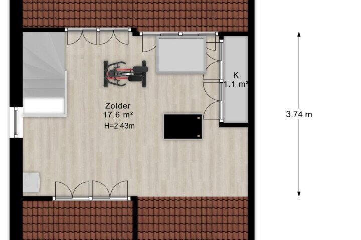 De zolder is te bereiken via een vaste trap en is voorzien van extra opbergruimte en een dakraam. Deze ruimte is circa 18 vierkante meter groot en is daarmee ideaal voor één of meerdere slaapkamers. Op de zolder bevindt zich ook een recente cv-ketel: een Vaillant EcoTec uit 2024, net als de mechanische ventilatie uit 2022, beide in eigendom.